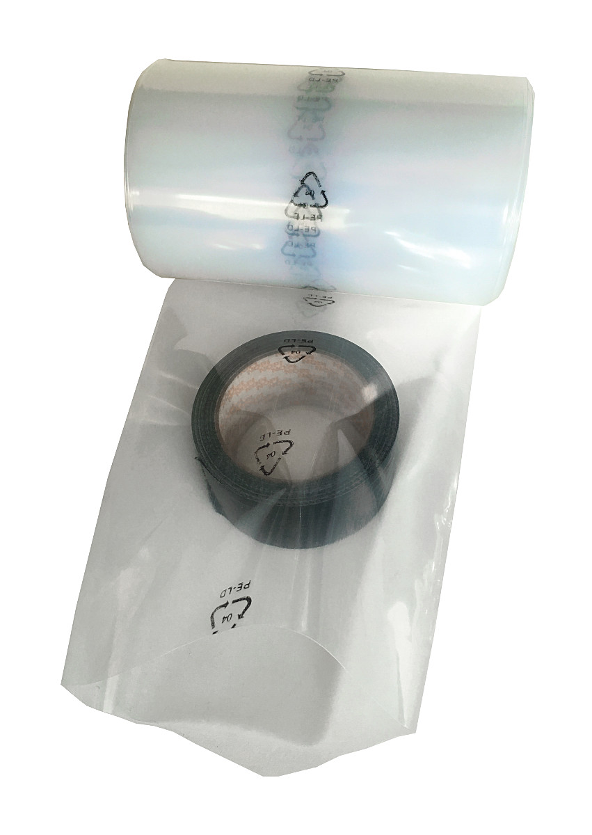 | PE - Schlauchfolie, transparent auf Pappkern 40 mm, mit Recycling-Symbol | |